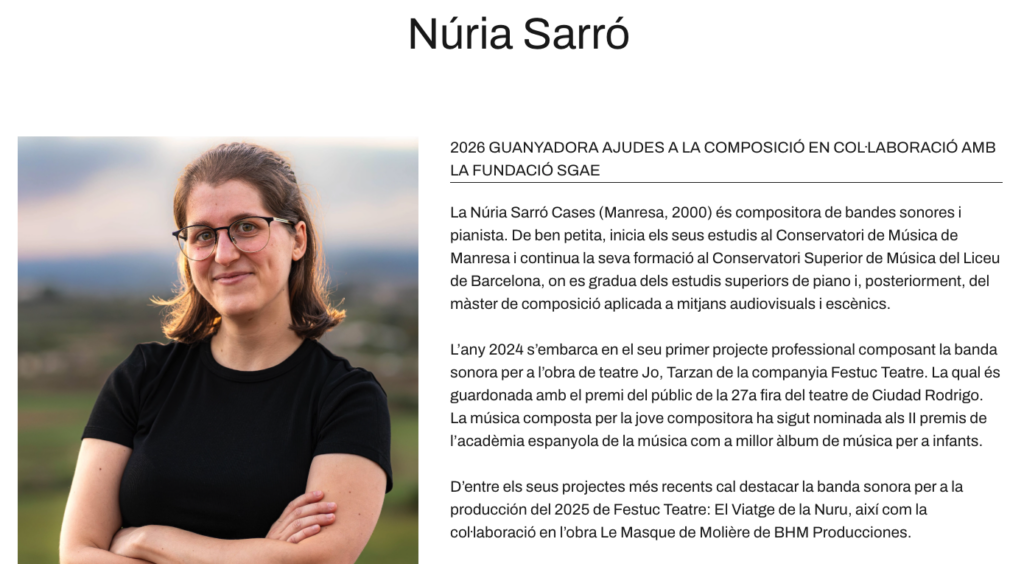So happy to have been selected for the 2026 composition grant Cases de la Música in collaboration with Fundación SGAE !